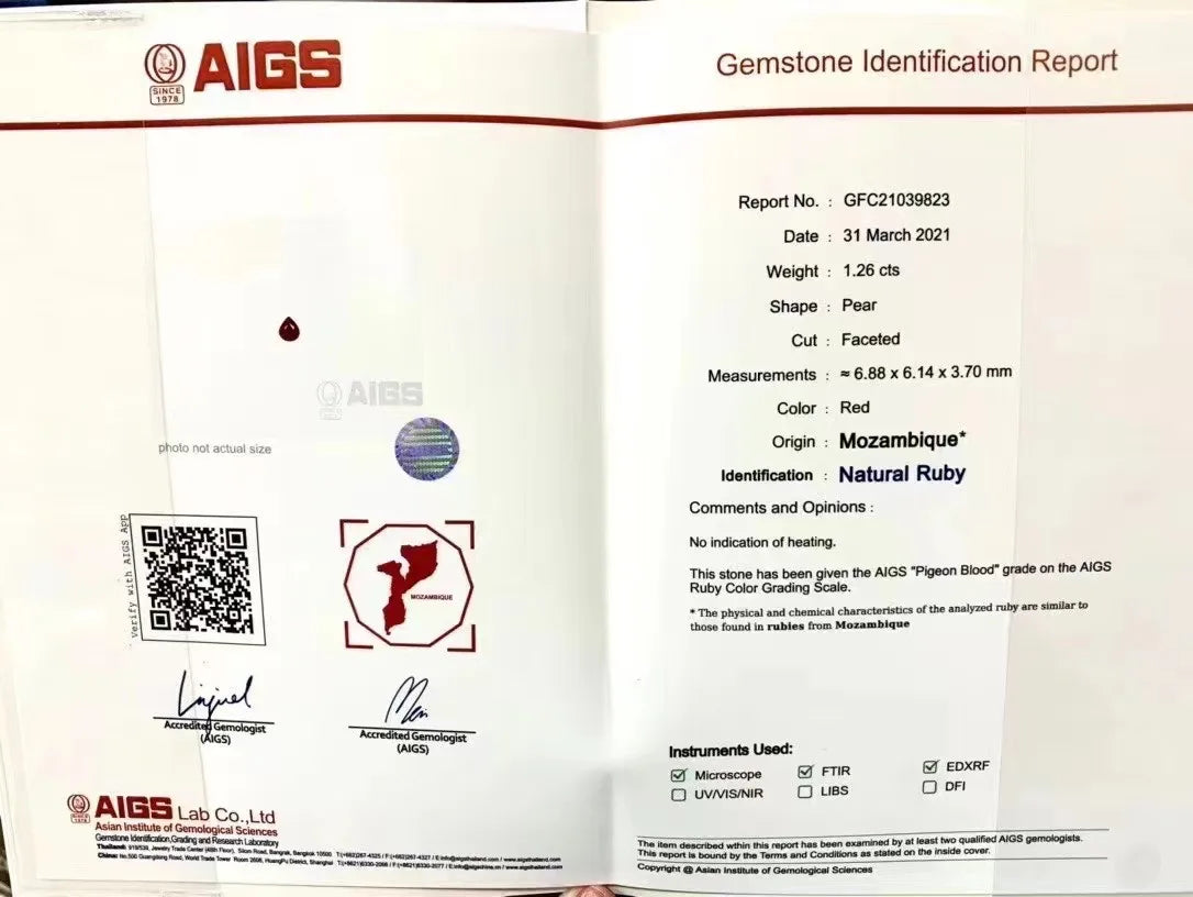 SGARIT Wholesale Jewelry Ruby Gemstone Ring 18K White Gold 1.26CT Pear Cut AIGS Certified Natural Red Ruby Wedding Ring